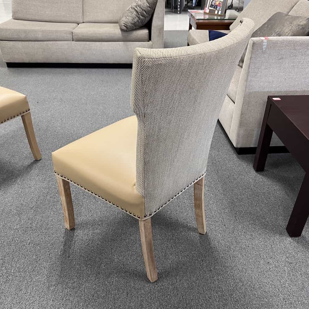 Color/Finish: Tan vinyl seat, linen look upholstery back