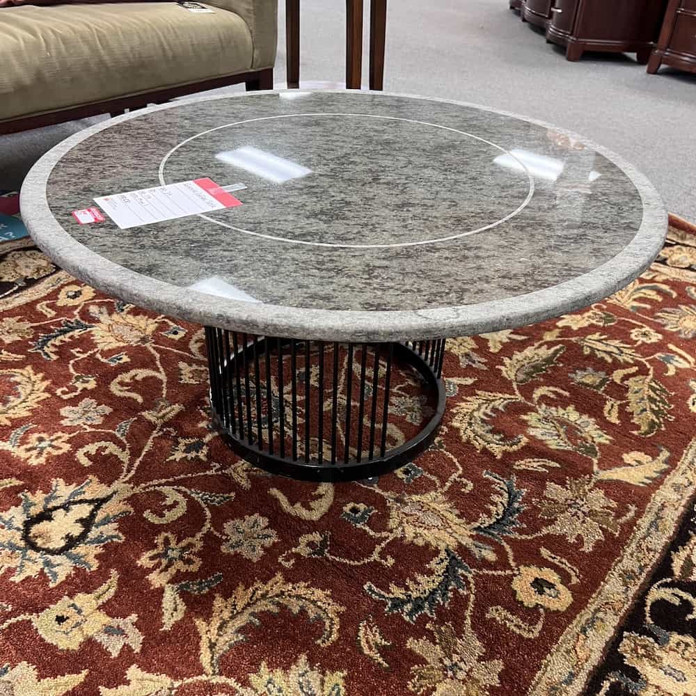 Color/Finish: green granite stone top, round black metal base