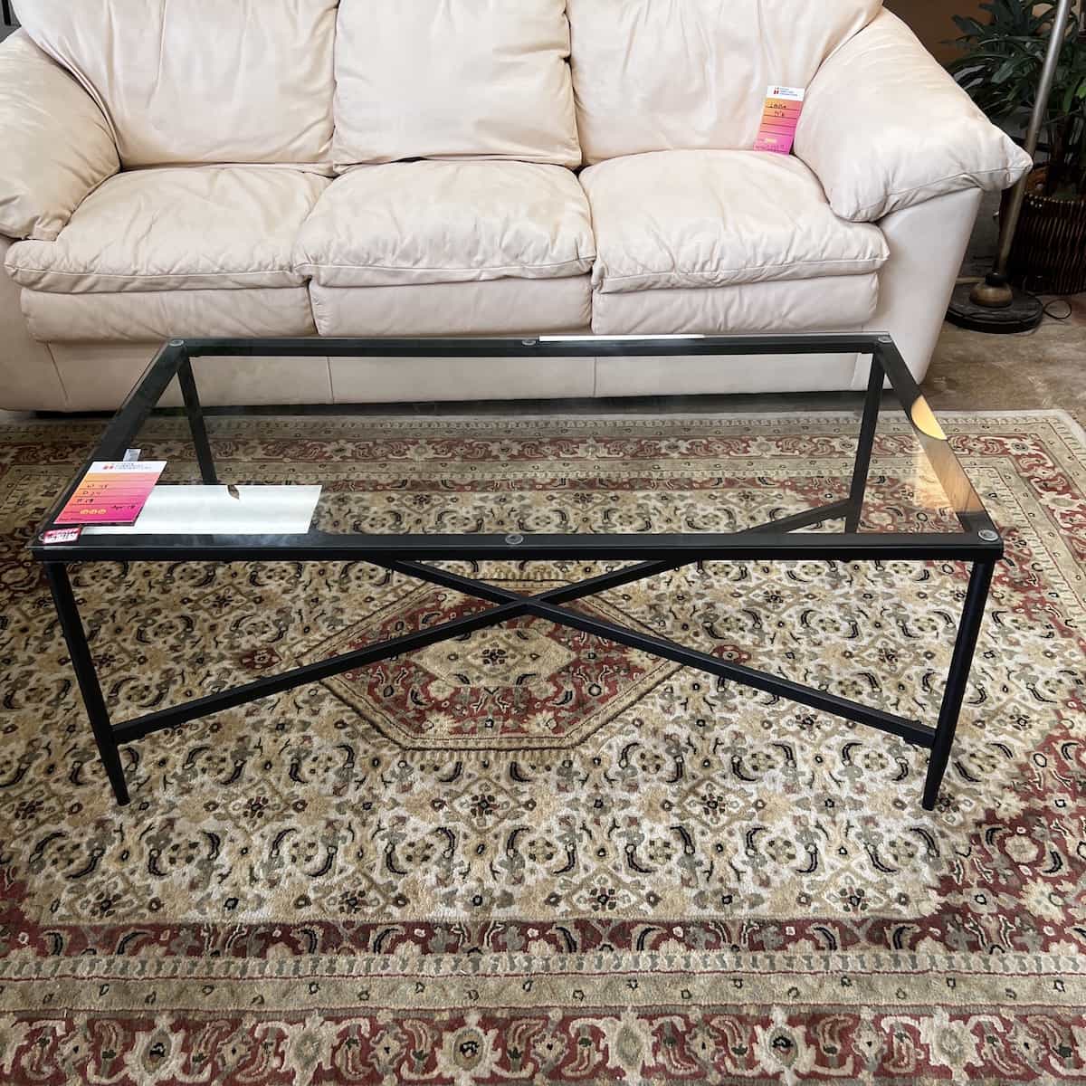 Color/Finish: black metal frame with glass top