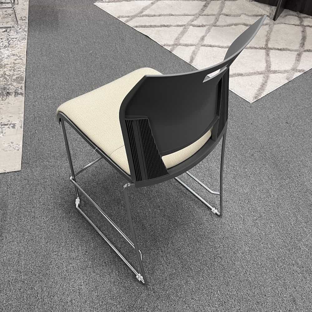 Color/Finish: grey plastic with white upholstered seat, chrome base