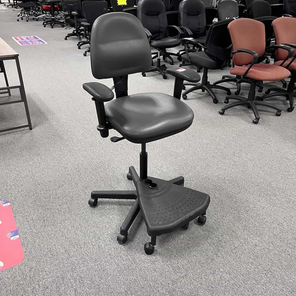 Black Office Stool with Swivel Footrest