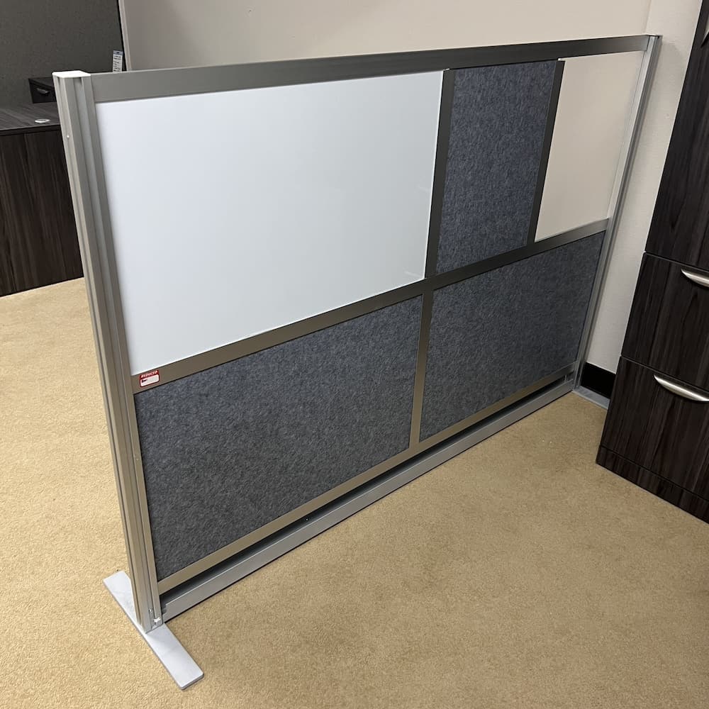 Finish/color: grey pressed fiber, white dry erase board, aluminum frame and feet