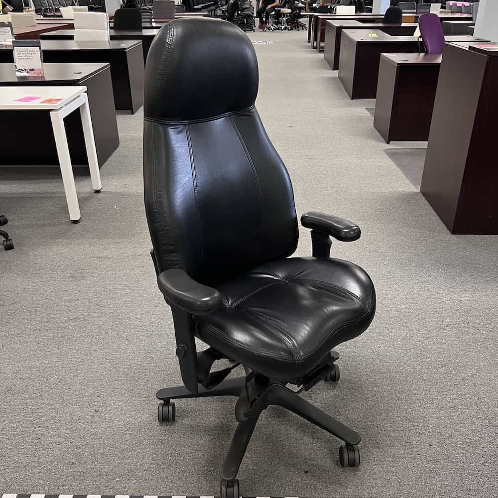 THIS CHAIR’S ARMS HAVE BEEN REPLACED. They were replaced with neutral posture arm rests and are black plastic. This is due to the original arms being broken and torn. The Neutral Posture arms fit great and are adjustable!