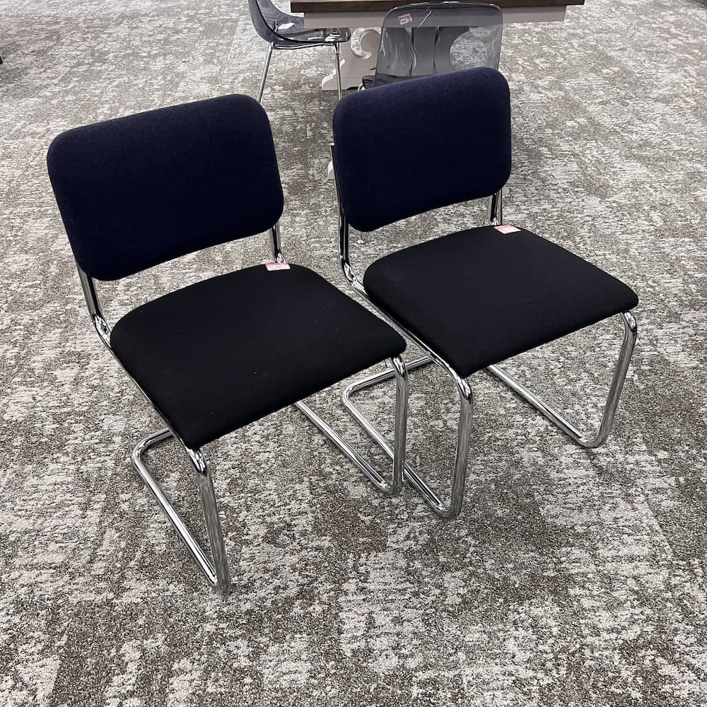 Color/finish: black fabric seat and navy blue wool back upholstery with chrome frame