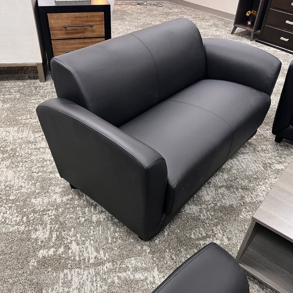 Look fancy while sticking to your budget with this open box modern leather loveseat.