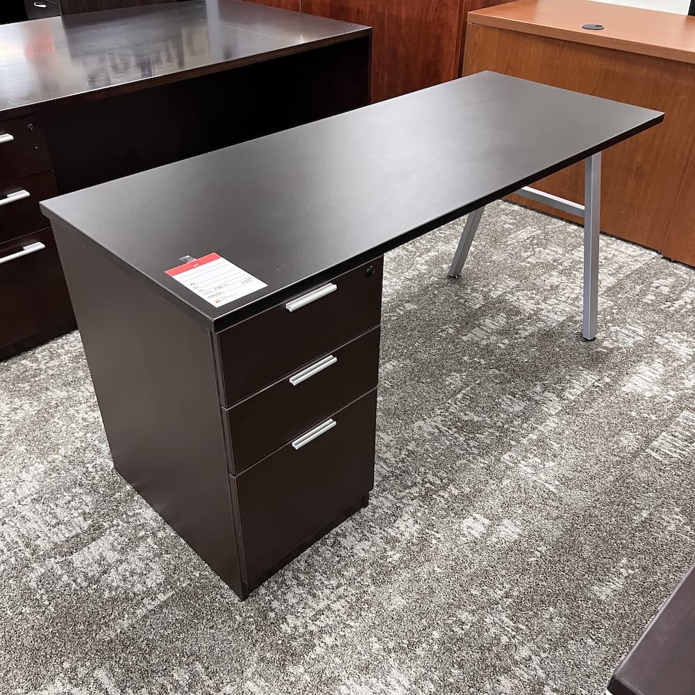 Color/Finish: Espresso laminate with silver pulls and grey metal legs
