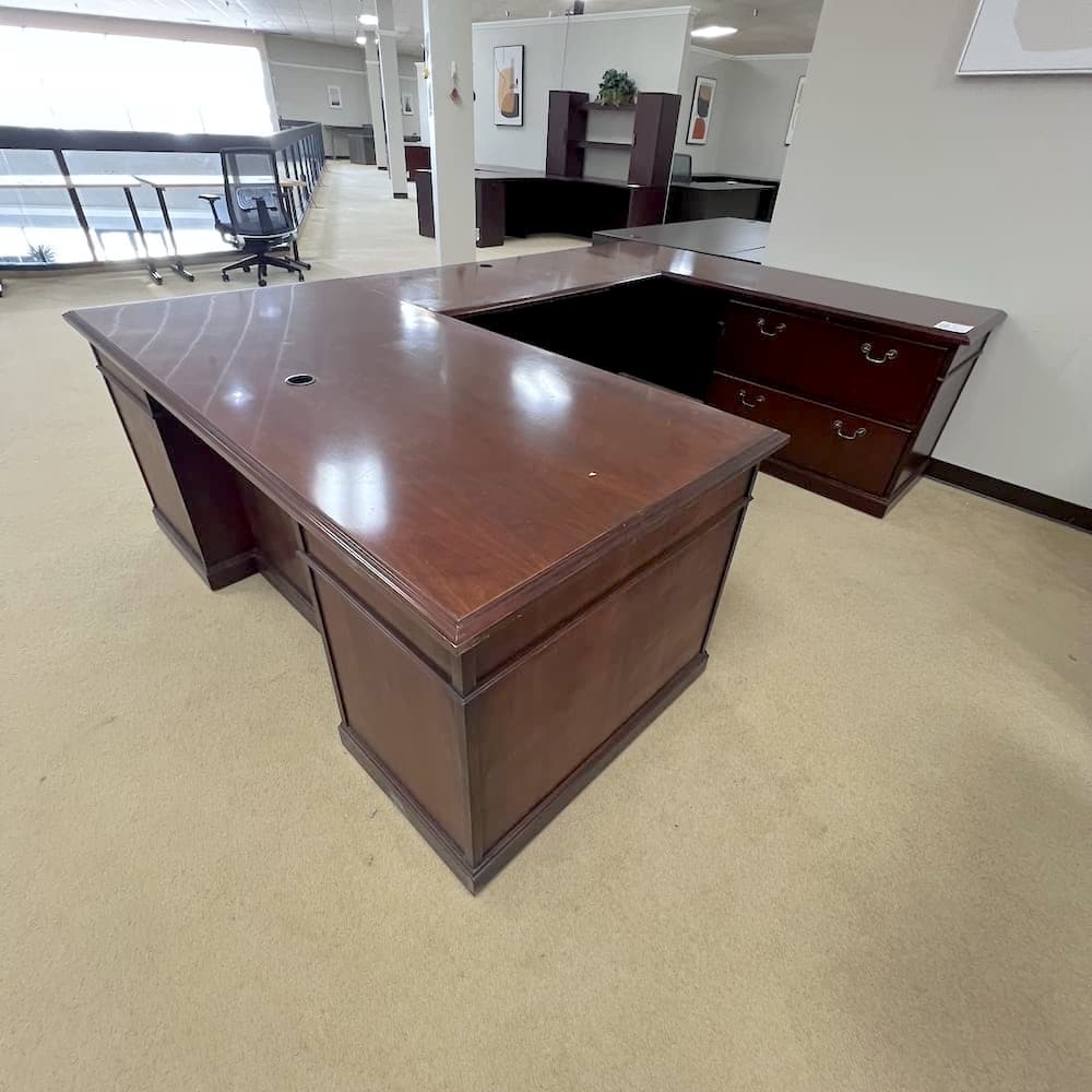 This u-desk has an old world feel but for a nice price. Lots of room for all the paperwork.