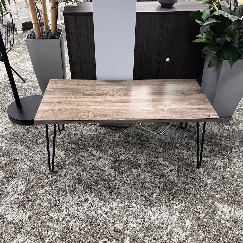 Color/Finish: weathered walnut laminate top, black metal legs