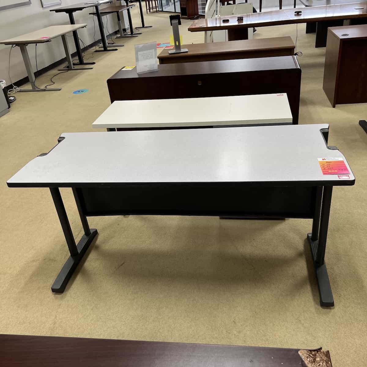 Color/Finish: light grey laminate top, grey metal base