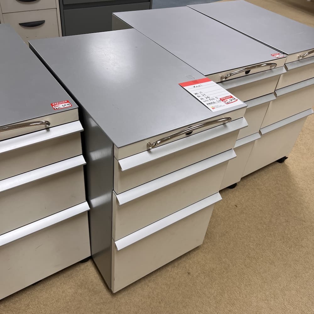 15″ W x 26″ H Knoll White and Grey Rolling Vertical File Cabinet