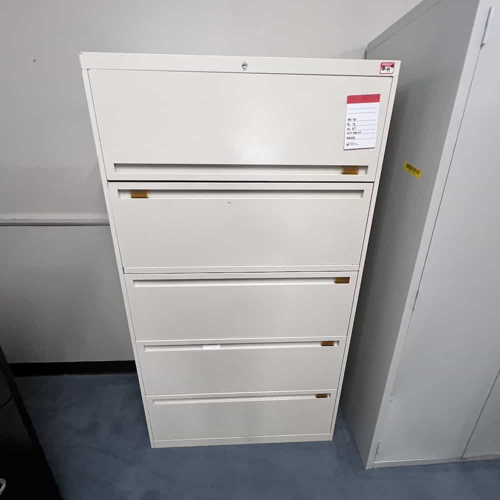 64″ H x 36″ W Cream White Metal 5 Drawer Lateral File