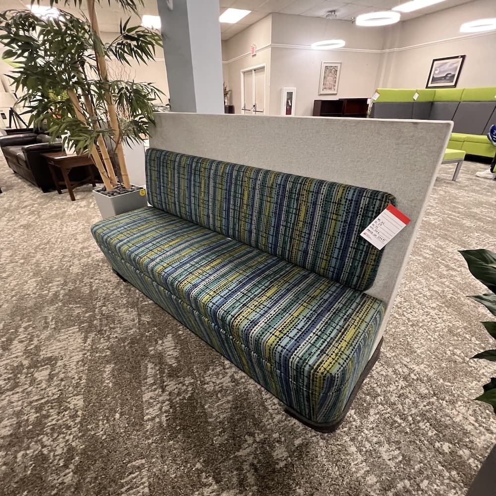 Color/Finish: grey upholstered back with green stripes upholstered seat
