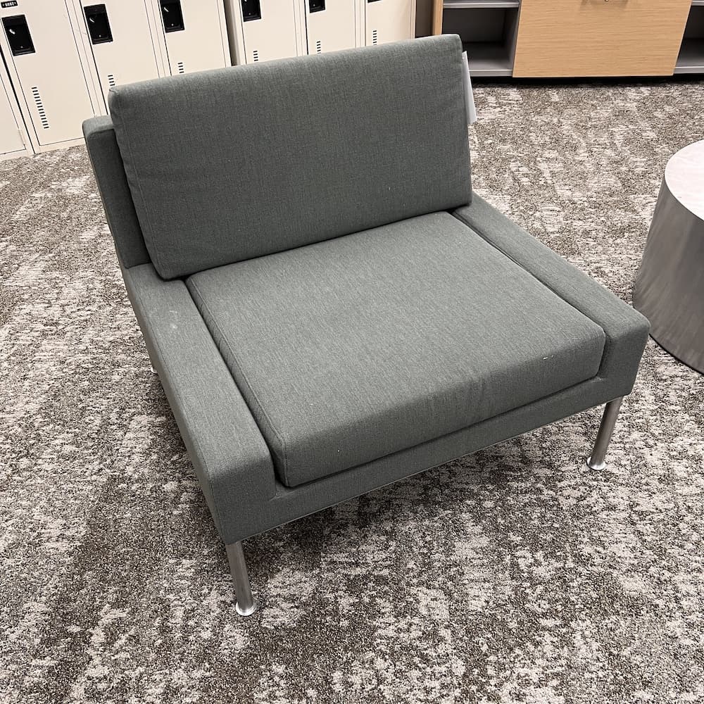 Color/Finish: sage green upholstery, silver base