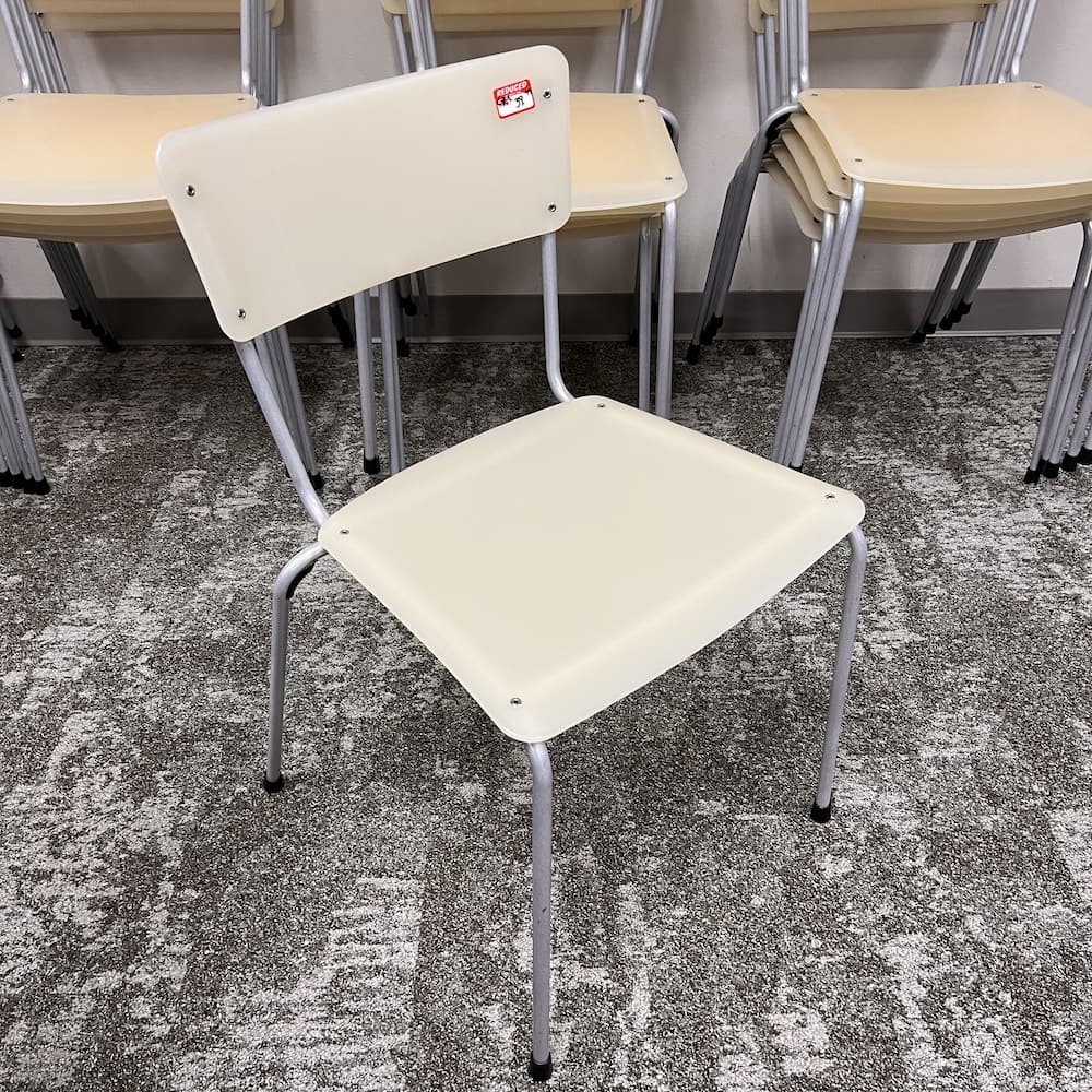 Color/Finish: off white slightly translucent seat and back with grey metal base