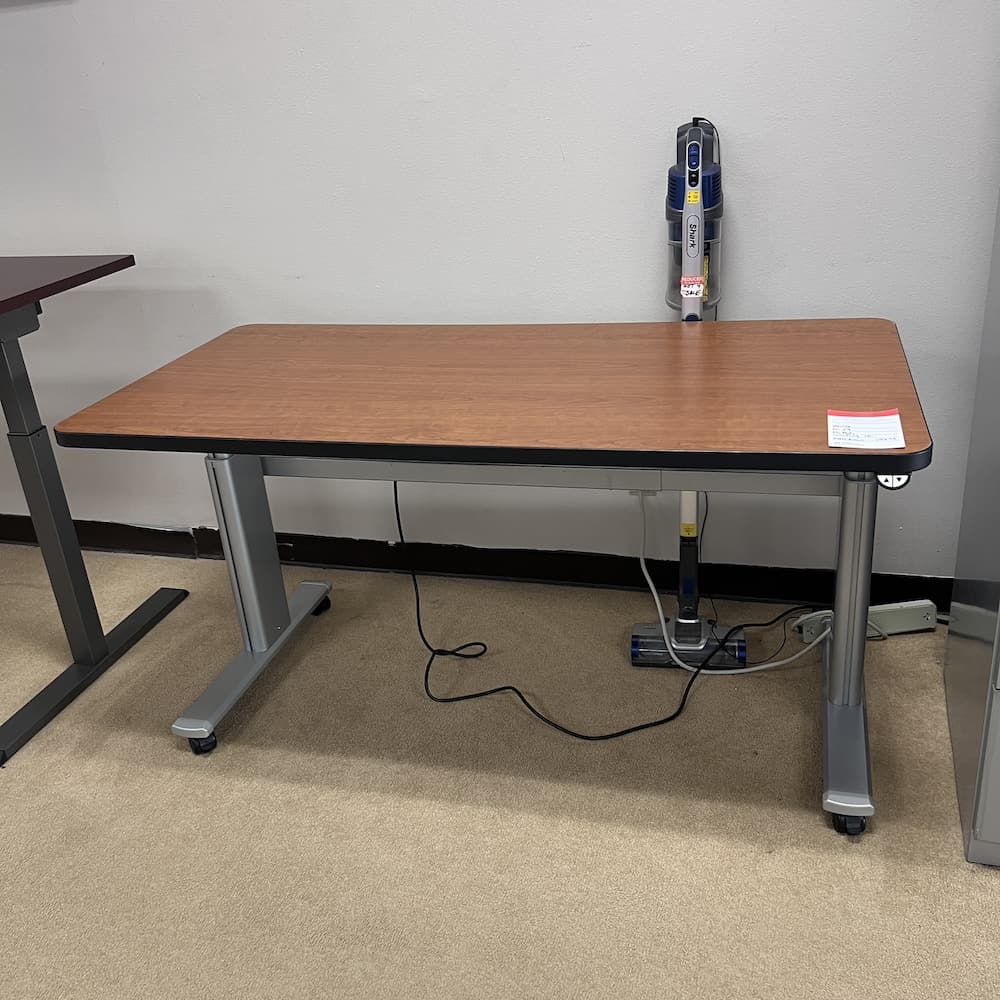 Color/Finish: cherry laminate top, black edging, grey metal base
