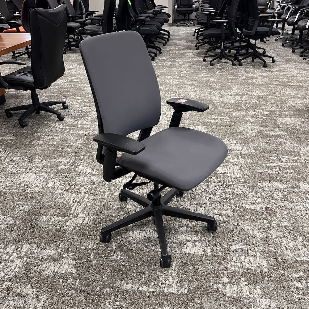 Color/Finish: grey upholstery, black base